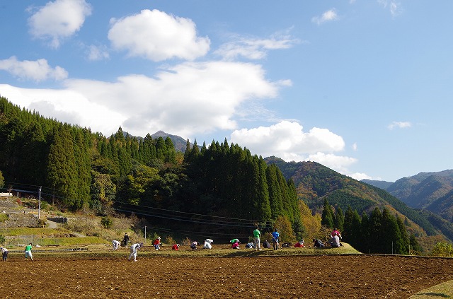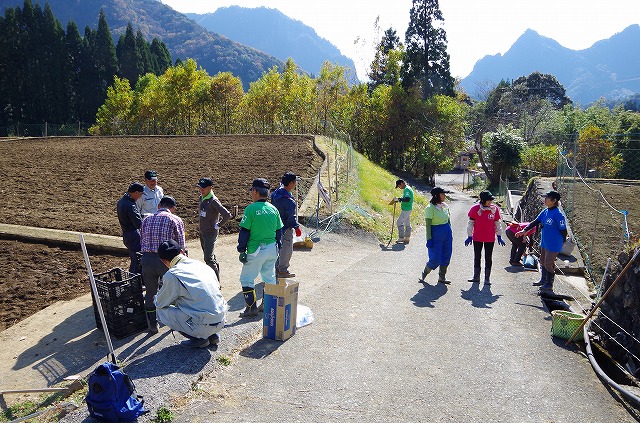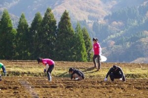 毎年、春に「チューリップ祭り」のお手伝い、5月に「チューリップの球根掘り」のお手伝い、そしてこの時期に「チューリップの球根植え」のお手伝い、年に三回地元の人と【九州つなぎ隊】は顔を合わせ一緒に作業します。
