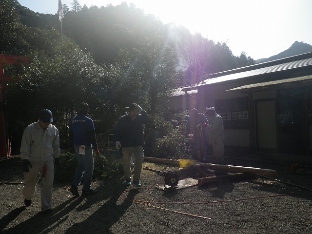 そして神楽当日の土曜日。7名+事務局2名でのお手伝い。午前中 男性陣はみこや周辺の最後の仕上げです。