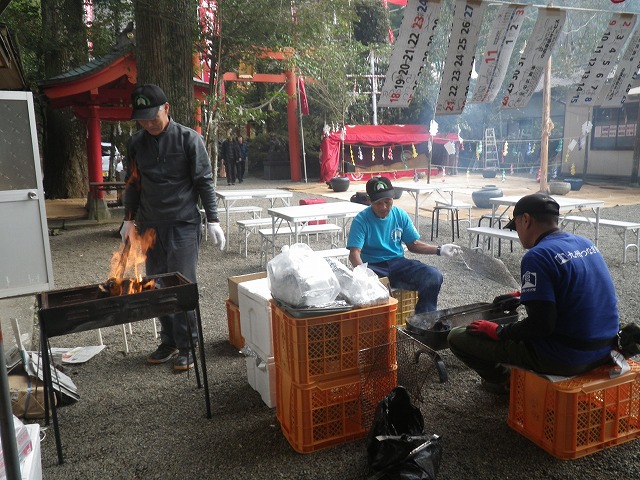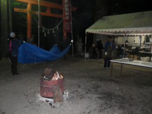 夕方になり、焼き鳥の下焼きをし、販売所も準備万端です。今年も多くの方が来てくださり賑わいました。