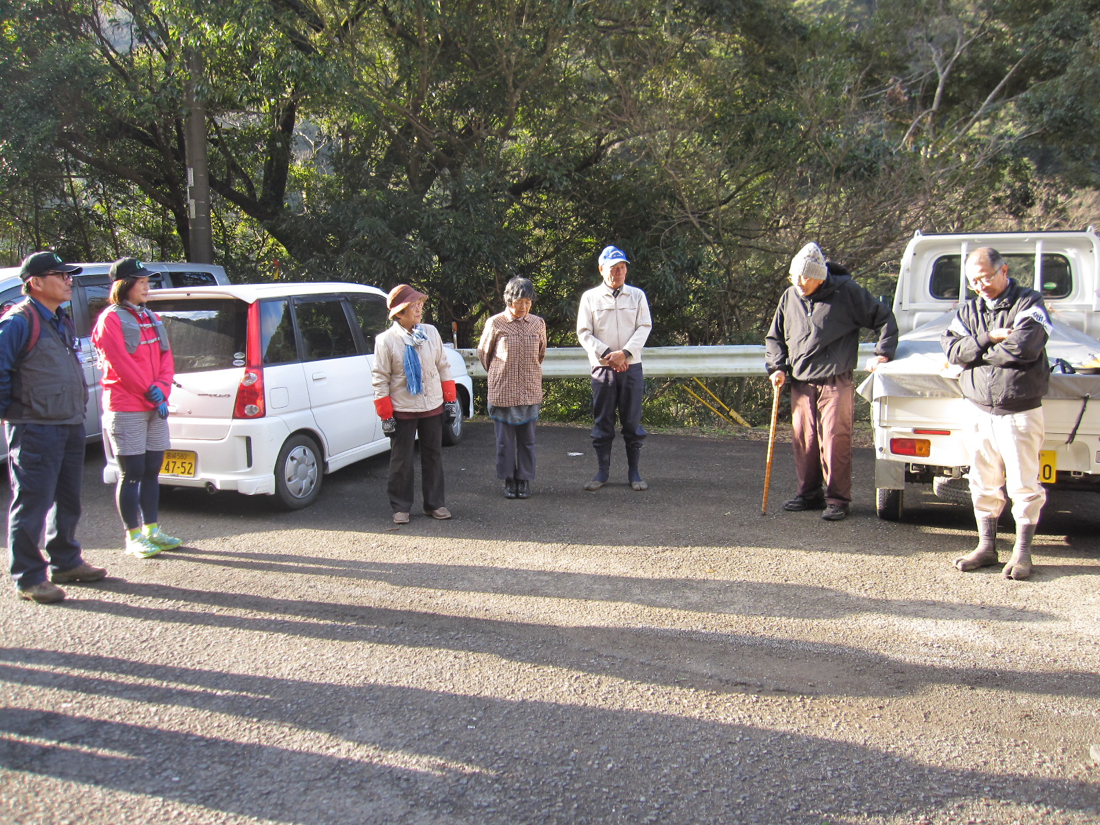 この日は消防出初式と重なったりで例年より地元の参加者が少ない中、隊員5名、事務局1名が地元の方と3組に分かれ、作業を行いました。
