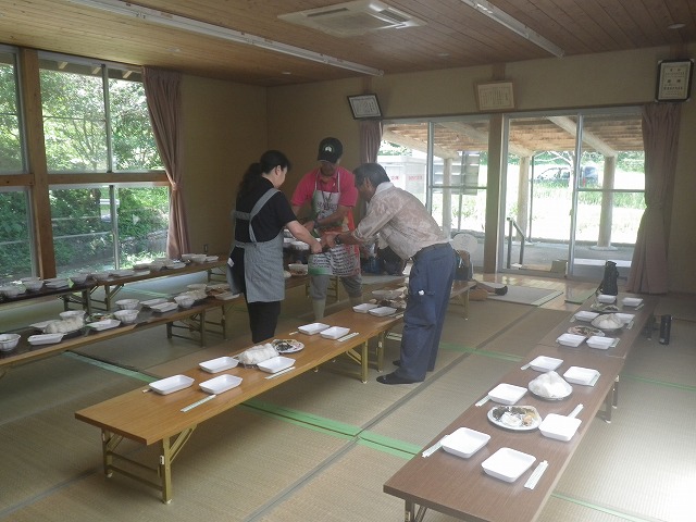シェアする 0 0 0 0 LINE! 宮崎市高岡町飯田地区「早期水稲の稲刈り体験会」のお手伝い その2 マッキー 2019/8/1 0 こんにちは!事務局マッキーです。別名おぎんです。お風呂に入らないと・・・。 はちべえさんから第一弾の報告がありましたので、私は簡単に。 飯田地区農地、環境を守る会の主催で毎年行っている「稲刈り体験」。 今年も多くの子どもたちが参加してくれました。 稲刈り体験はさぞ暑かったことでしょう。終了後の飯田地区で採れたおいしいお米とトン汁で心も体もエネルギー補給し、明日からまたがんばれます!!! それにしても飯田のお米はおいしい~。ご馳走様でした。!(^^)!