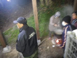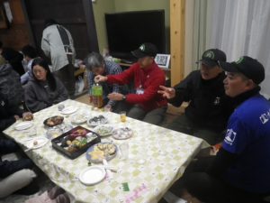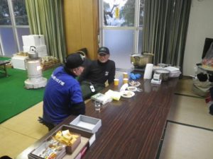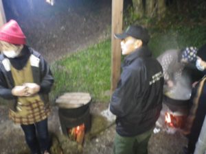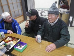 夜中の雑炊を出すと朝までは小休止。お酒も飲んだりして(すでにいくらかは飲んでいますが、)休憩タイム。