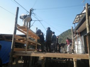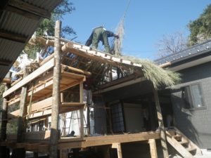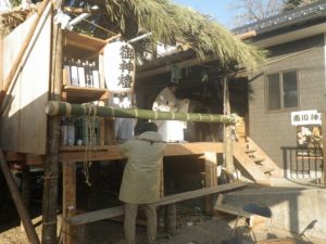 地元の皆さんはすでに集合し、みこや建ては昨日からの引き続きの最後の仕上げです。