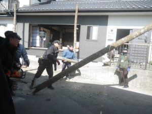 この日は隊員3名、事務局2名 計5名でのお手伝いです。昨日同様 集合場所に集まり神楽会場の松原集落を目指します。