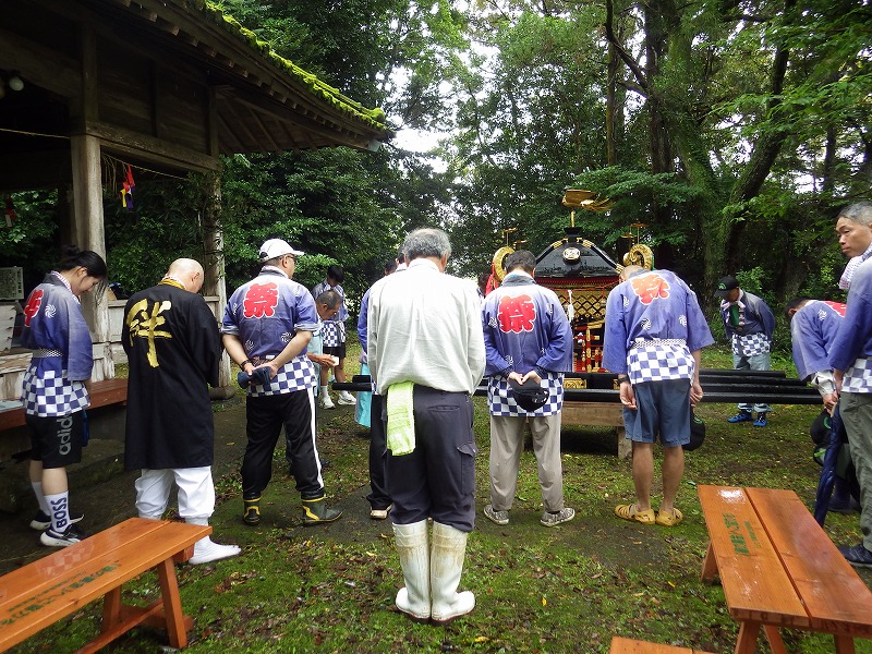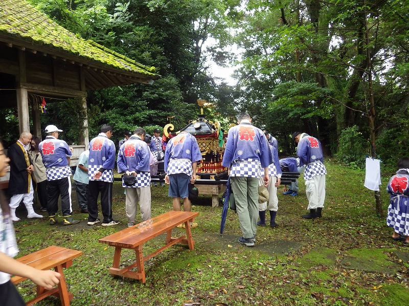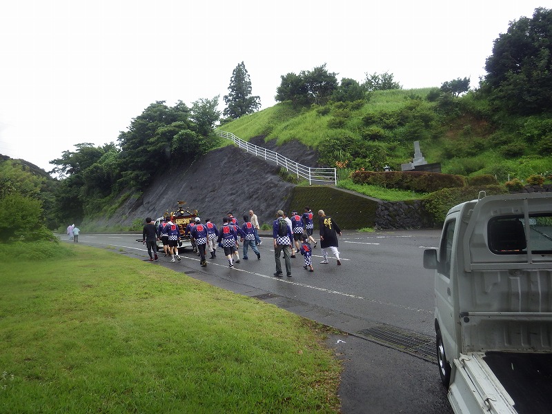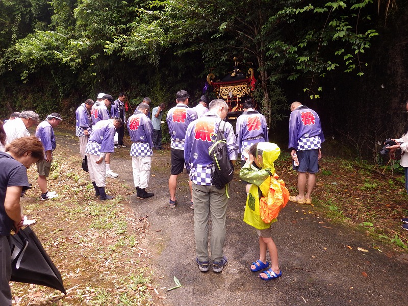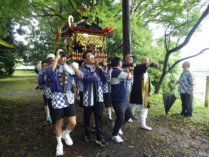 たまには軽トラに神輿を載せて休憩しながら、出発地点の大人神社に戻り、無事神輿は終了しました。