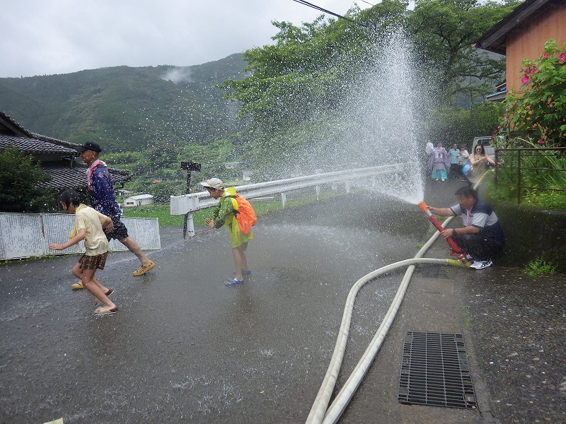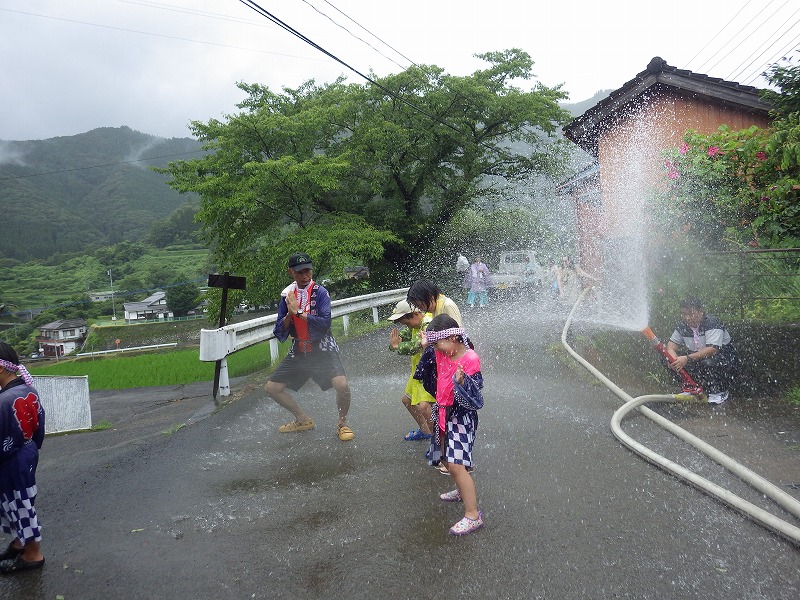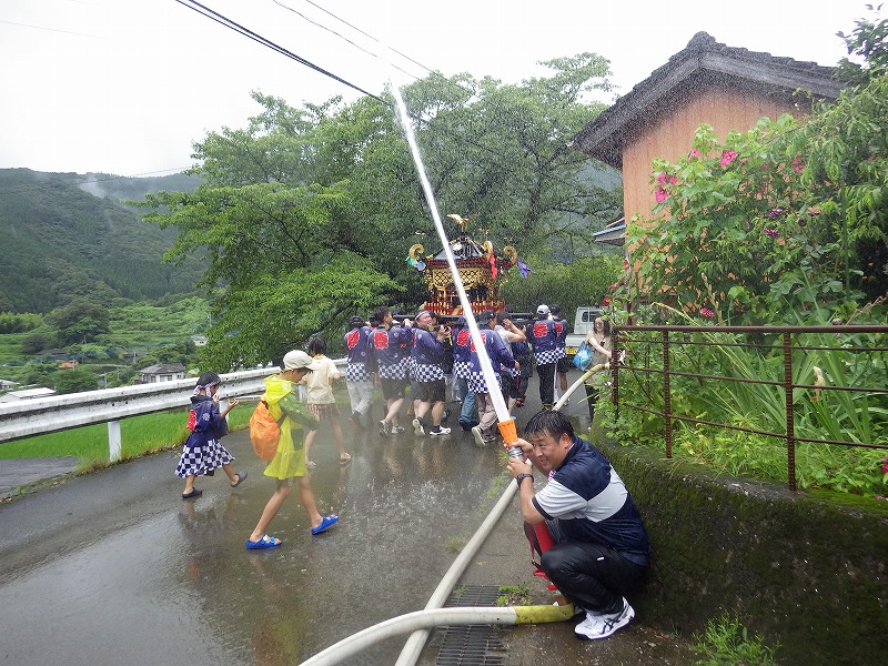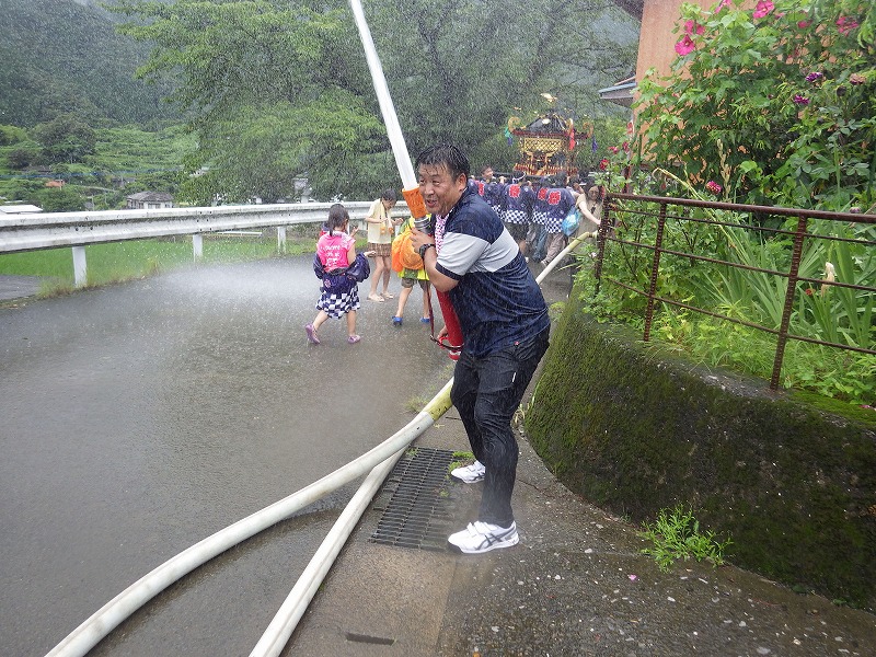 途中休憩の後、しっかり つっさきを準備してきて、そこからはいつもの水かけ神輿です。
