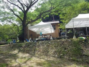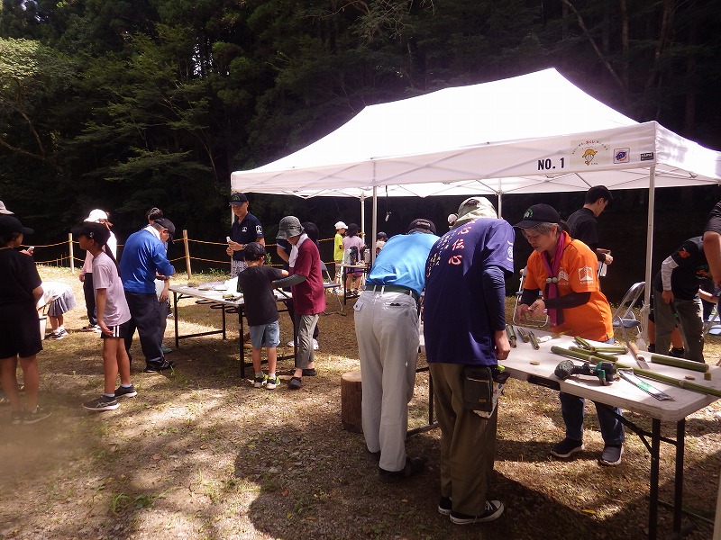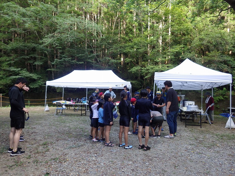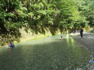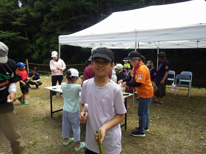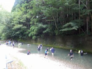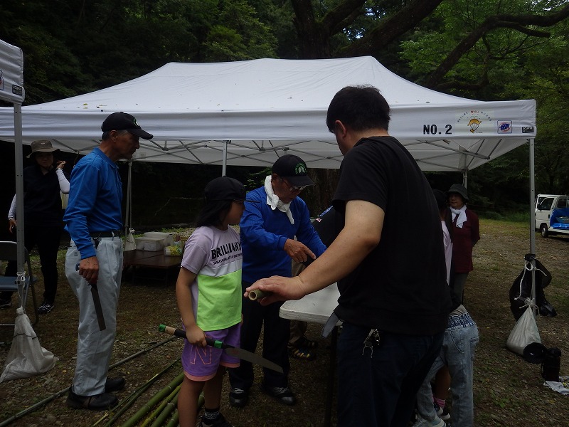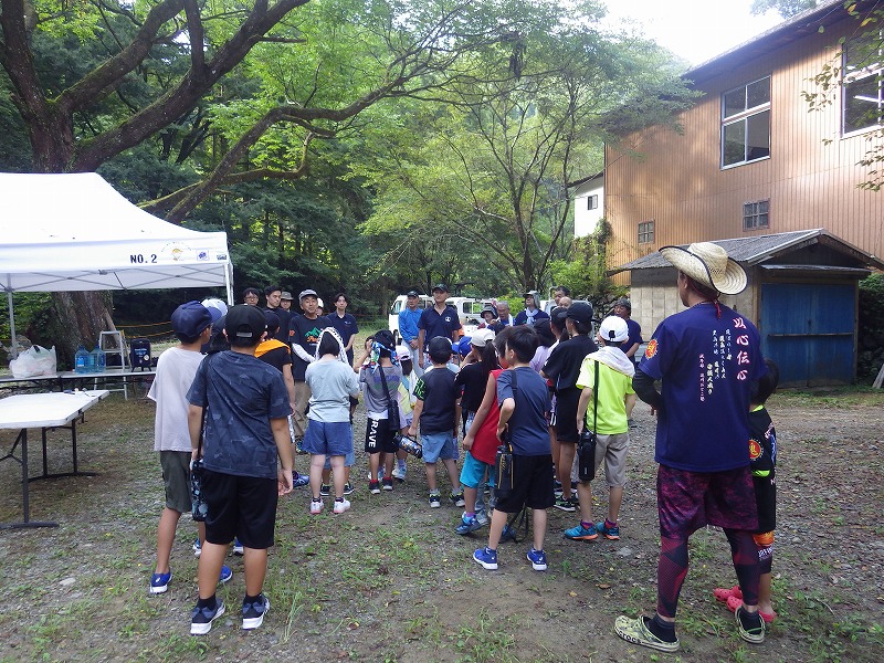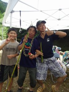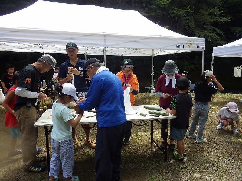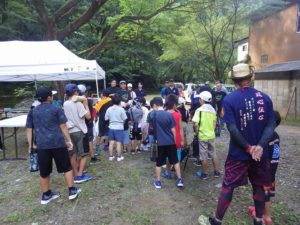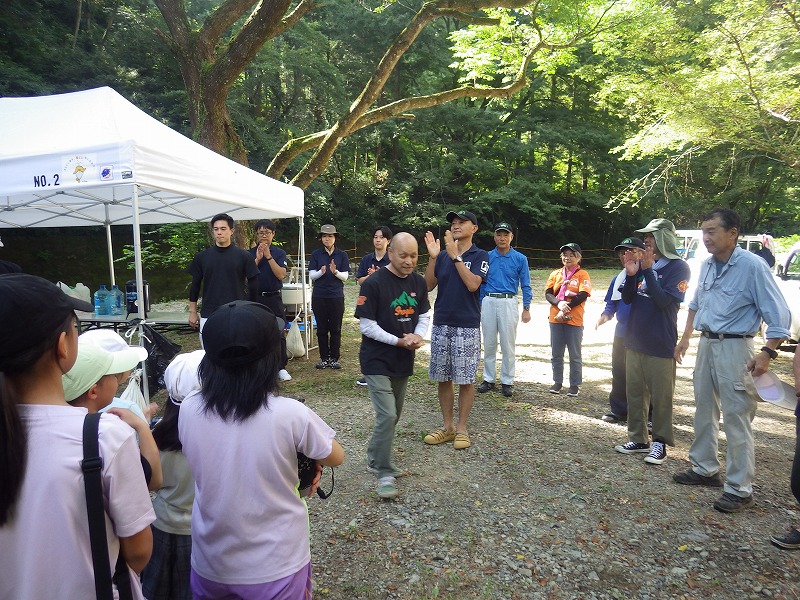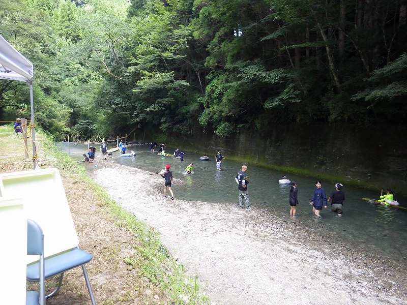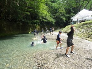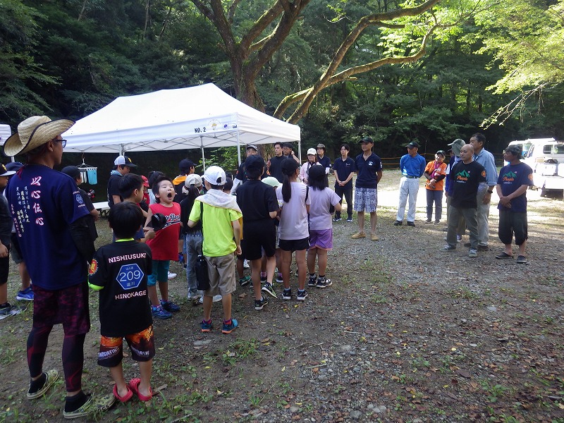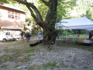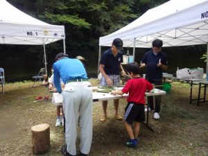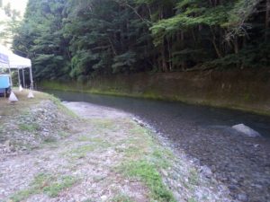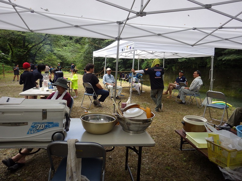 今年は雨が少なく猛暑続きの中での開催。雨による増水などの心配は全くありません。数年前は午前中は『山小屋 やまじゅう』で過ごしていましたが、まだまだ数年前の台風の爪痕が残り、始めから追川公民館下の河川敷での開催になりました。