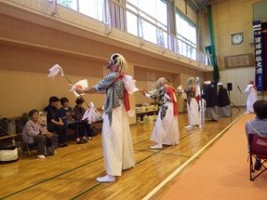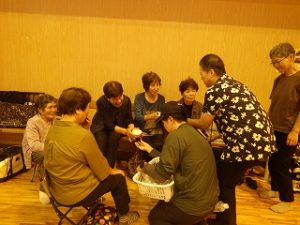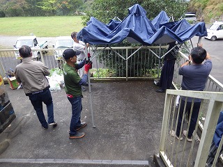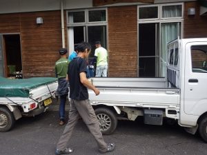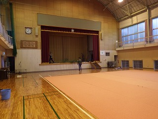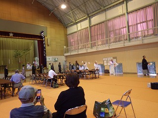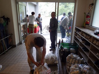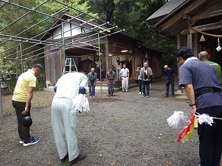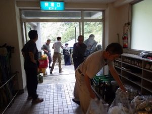 翌日はI藤さんが作ってくれたお味噌汁をいただき、片付け開始です。体育館に運んだものを公民館や神社に戻します。地元の皆さんも大勢来られ、あっという間に終了しました。