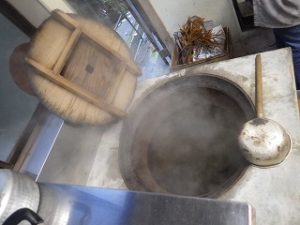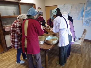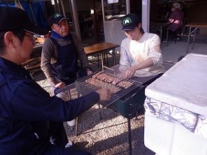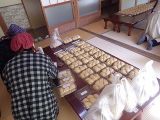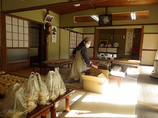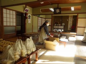 男性陣はみこや建てや婦人部が運営する出店の設営のお手伝い。女性陣(といっても私ひとり)は出店で出す、おもちづくりといなり寿司の下準備のお手伝いです。