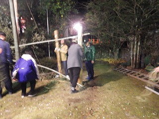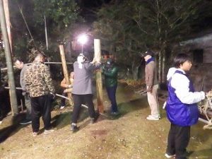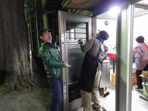 神楽当日。昨日からのI藤隊員そして毎年の九州電力の3名の皆さんが参加してくださり、事務局私ひとりの計5名でのお手伝い。