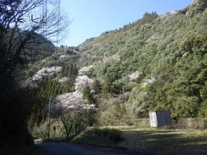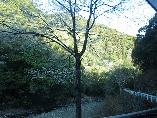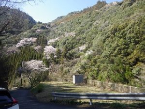 帰る途中 しん君の先で山に咲いた桜がとてもきれいでした。🌸