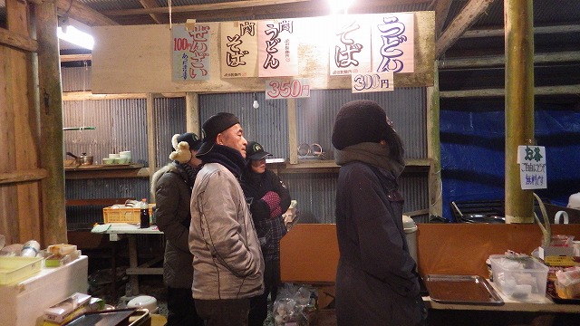 お客さんが暖を取るための火を絶やさないように、薪を運びくべながら夜がふけ、深々と冷え込んでいきます。